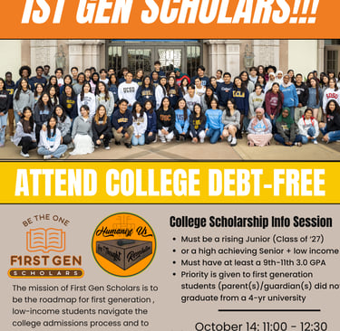 Our partnership with First Gen Scholars 501c3 will connect the young adults with a viable chance to go to a college, university, or ivy league school. "We empower first-generation low-income students by navigating them through the college admissions process to graduate debt free." Connected with a real opportunity to pursue higher education will provide further incentive to active their independence.